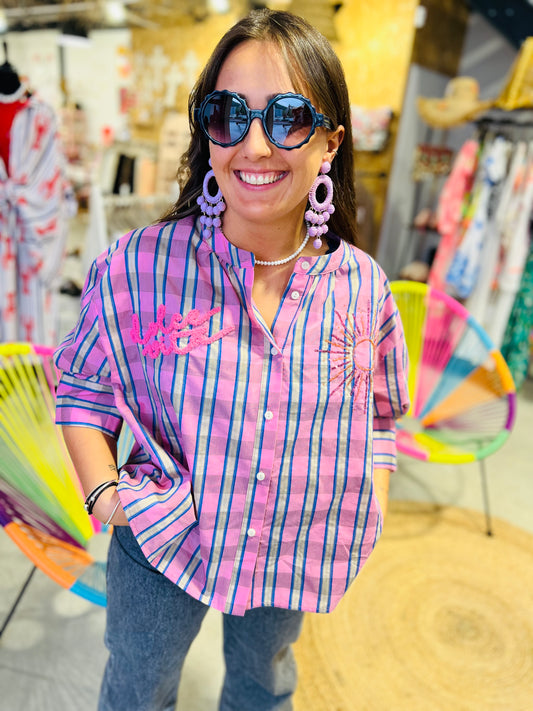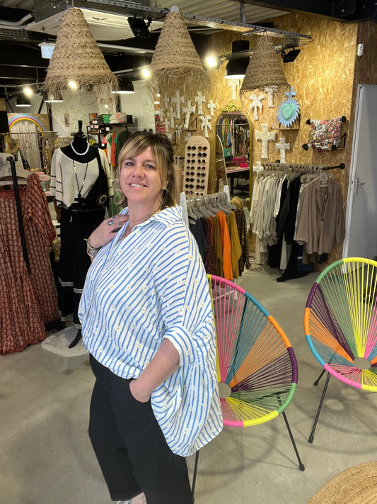 il n'y en a plusDu 36 au 48Blouse oversize coton Grazia - rayures bleues
