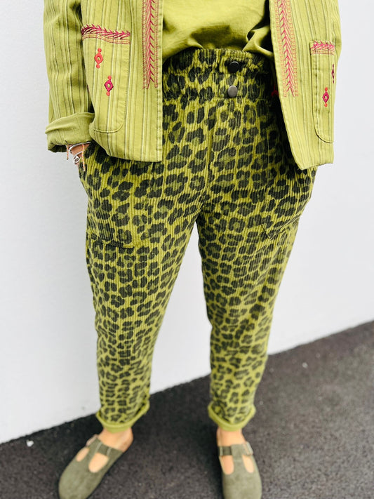 Du 36 au 40Pantalon JOE velours by Johanna - léopard vert