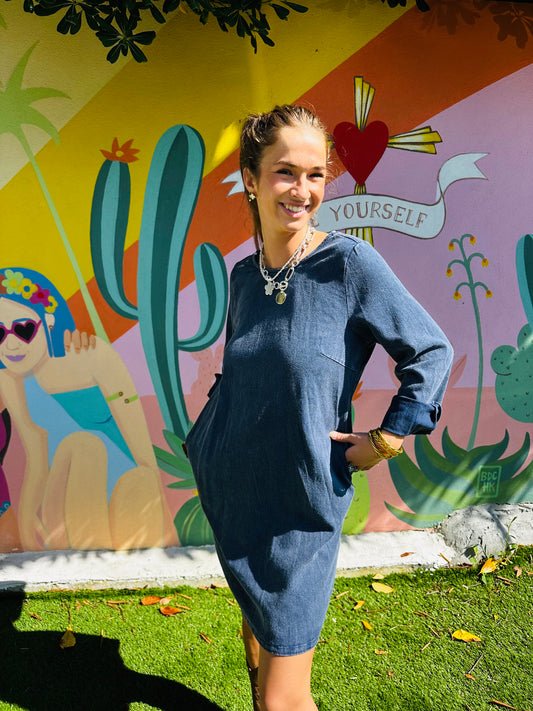 Du 34 au 40Robe dos ouvert Monika - denim marine
