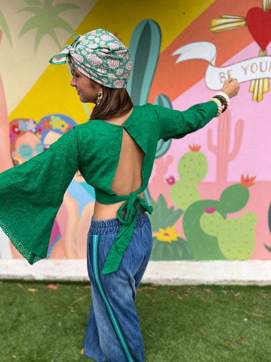 Du 34 au 38Crop top broderie anglaise Sunny - vert