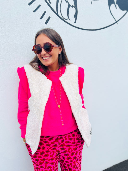Du 34 au 42Veste sans manche mouton léopard Gino - Rose