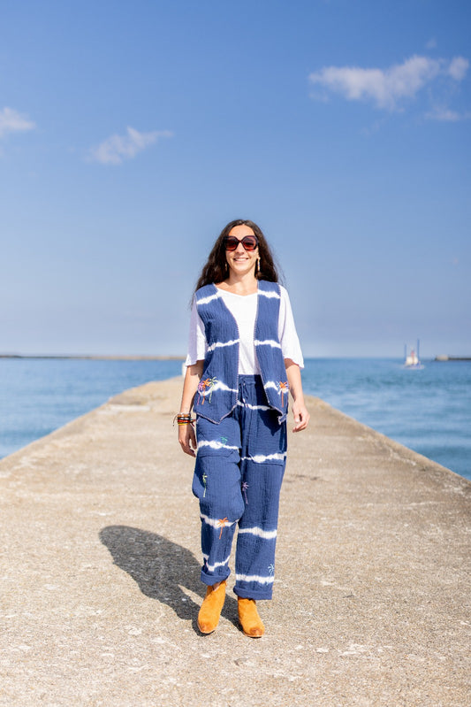 Veste matelassée sans manche New Delhi - Bleu & rose