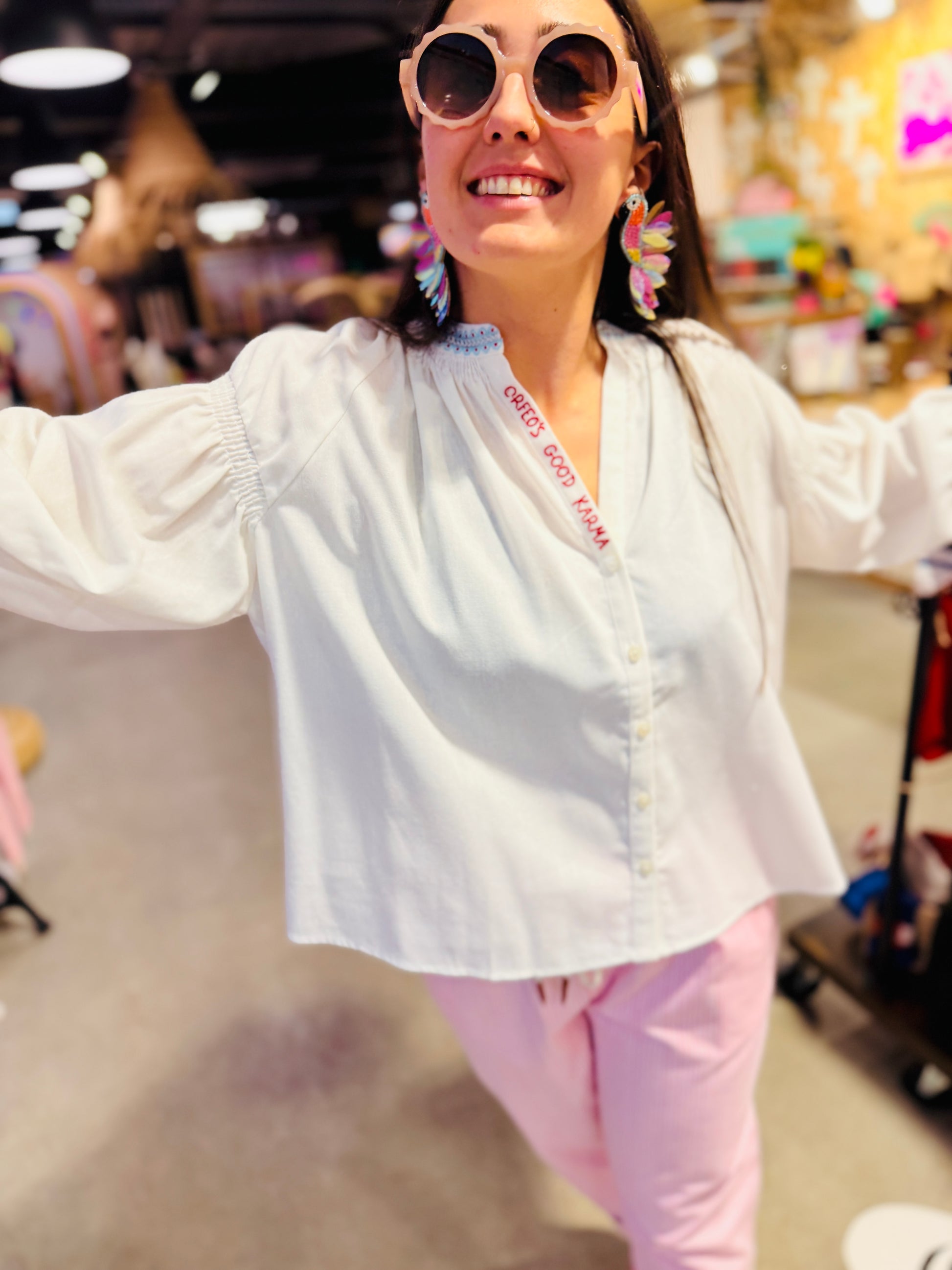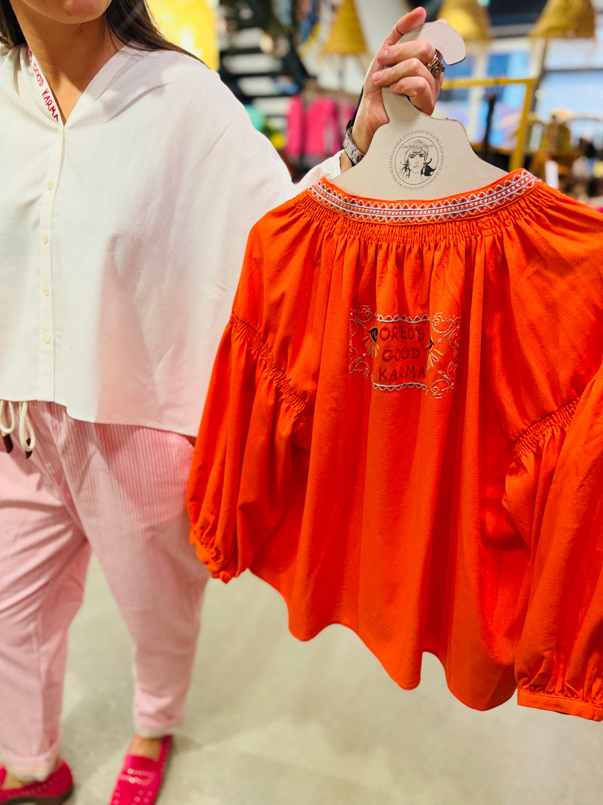 Légère comme une brise printanière, elle flotte sur toi sans te serrer. Son imprimé frais et coloré égaye n'importe quelle tenue.
