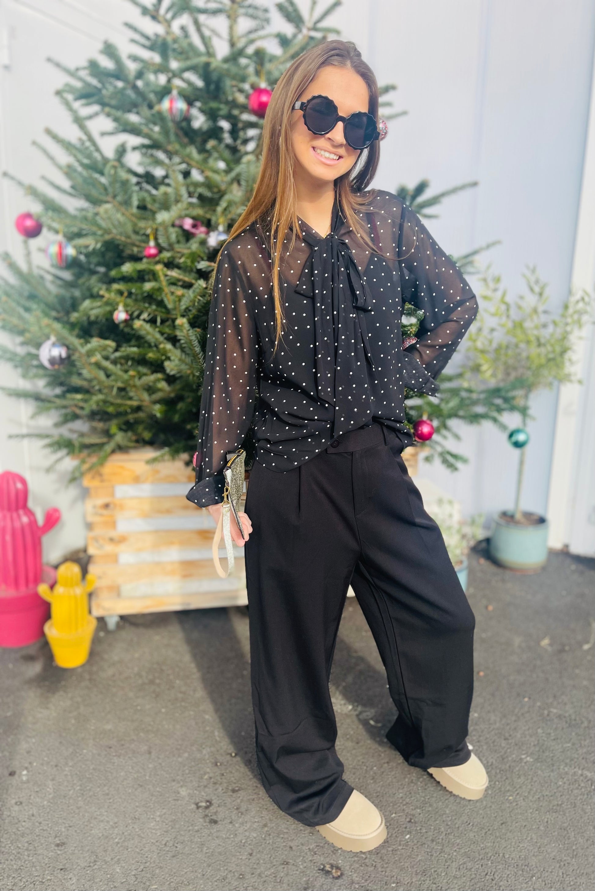 On adore les pois, mixés au tissu vaporeux et tout en transparence mais no panic! Cette blouse exquise est vendue avec son petit top noir à glisser dessous.