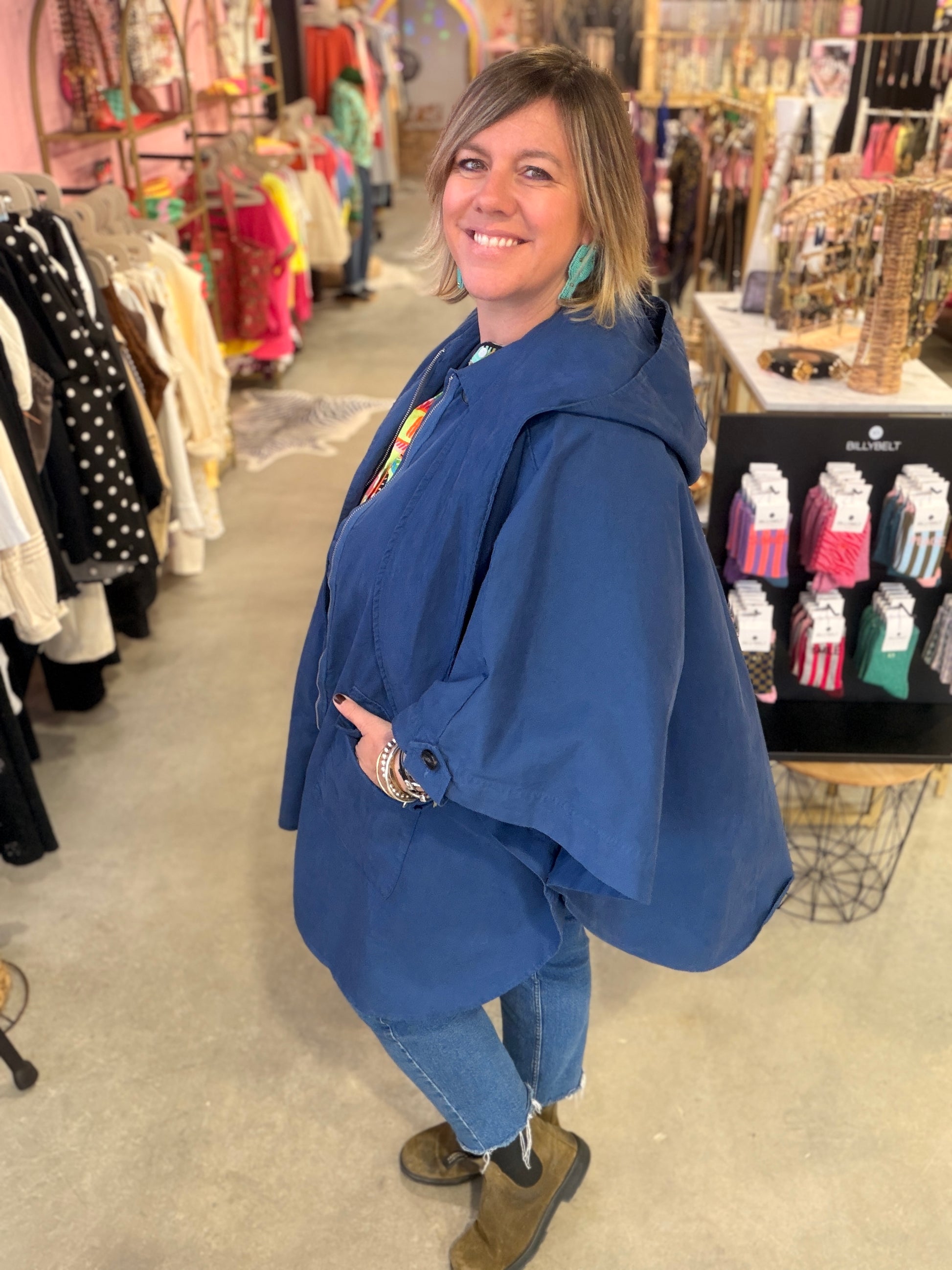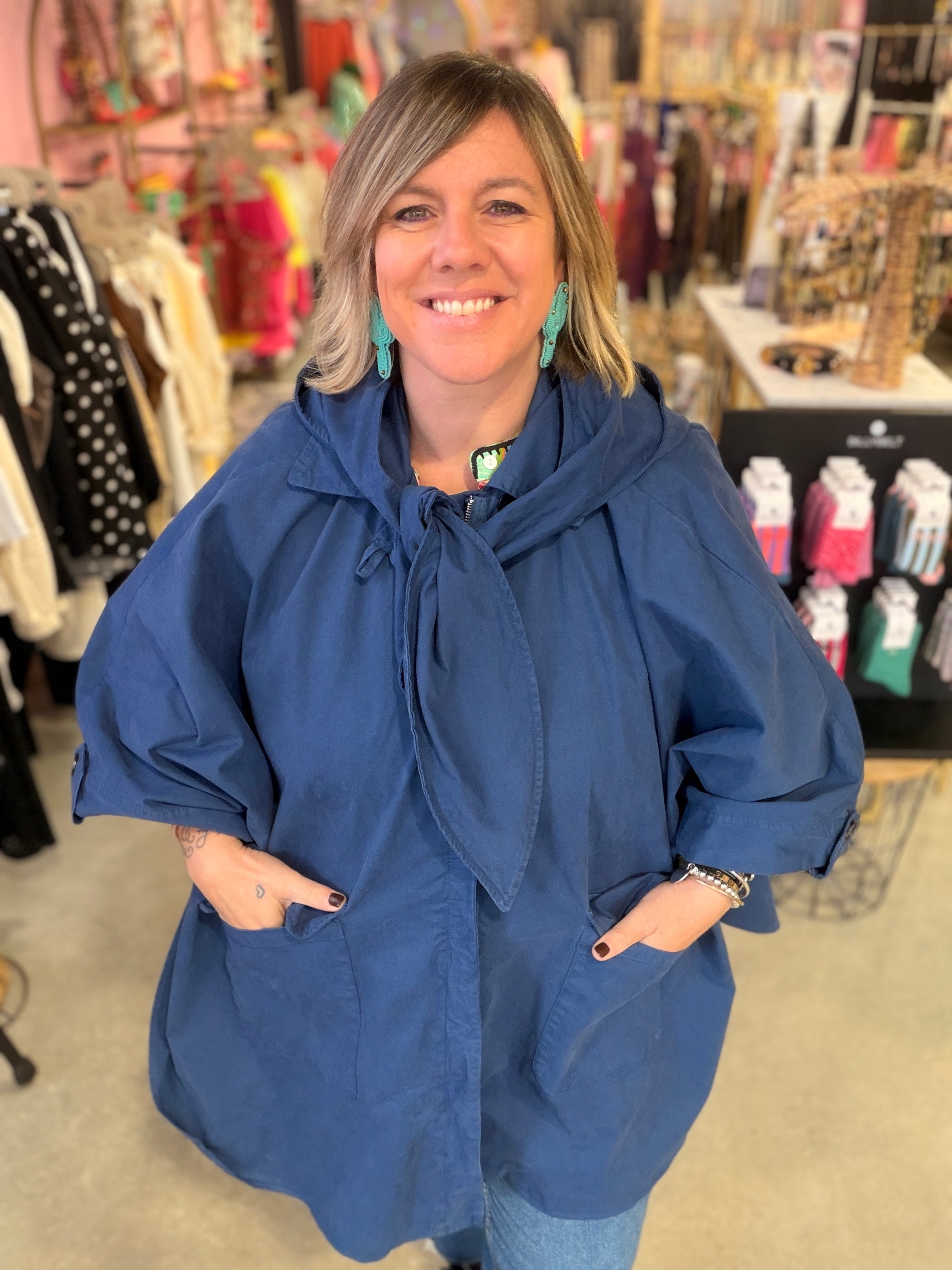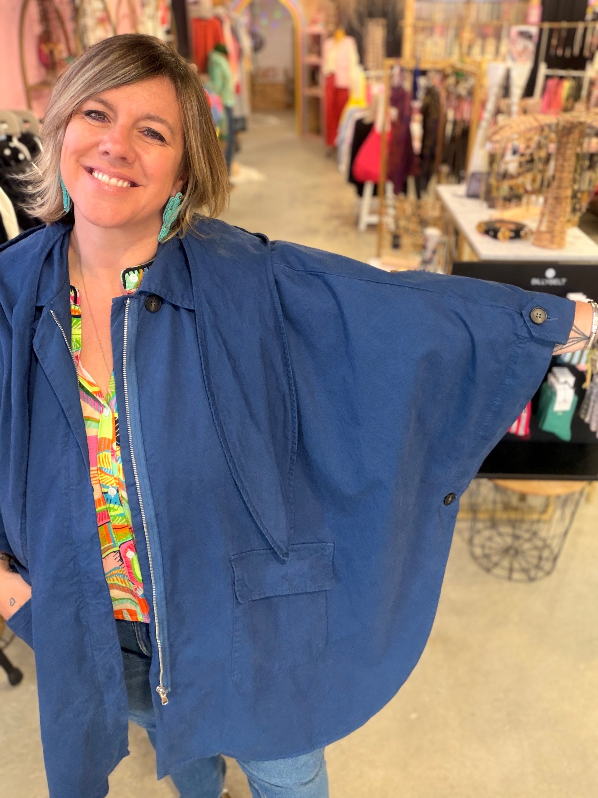 La Cape Antonella, dans son coloré marine profond, apporte ce petit supplément d'âme et de mystère à toutes vos tenues!