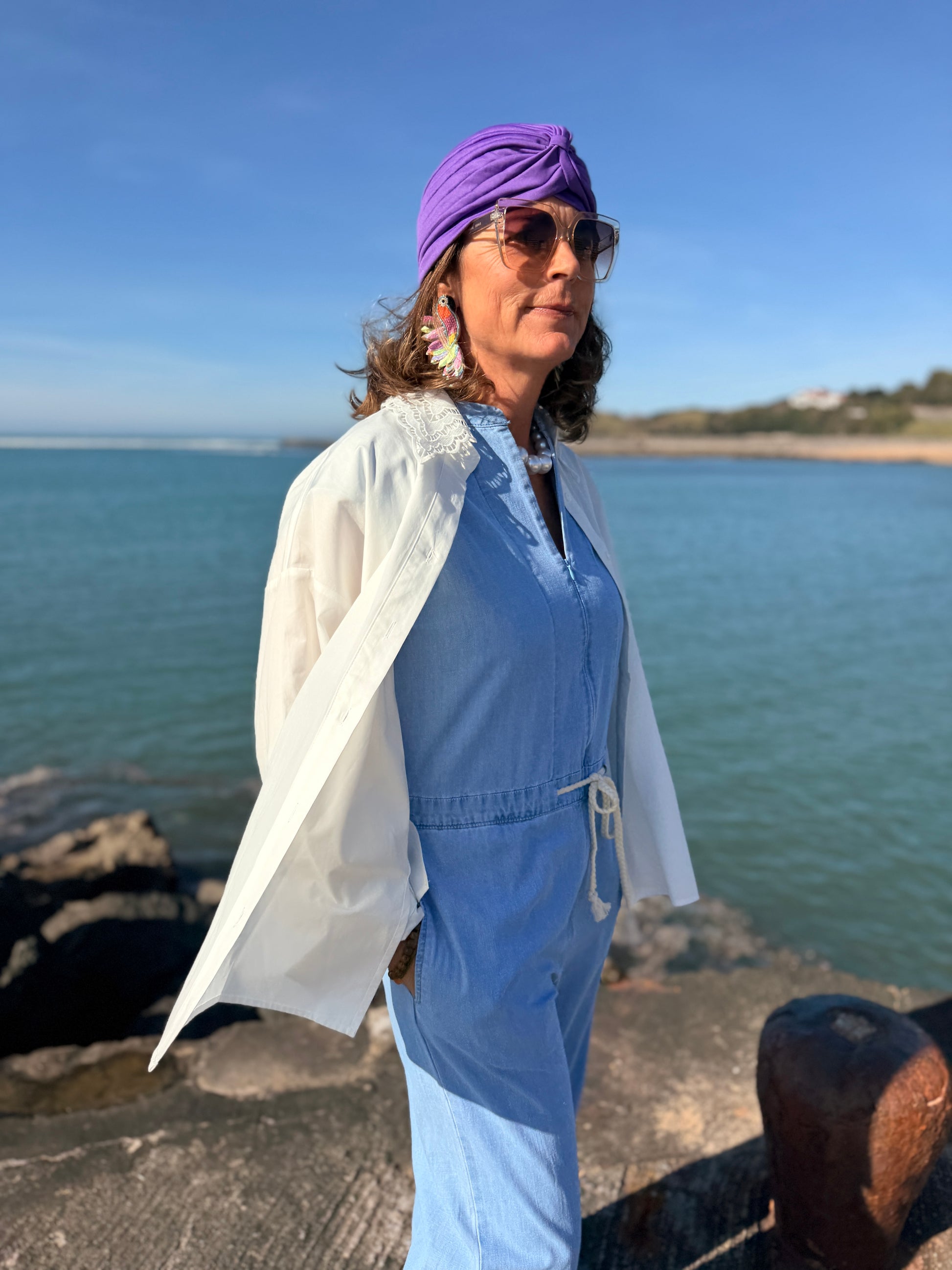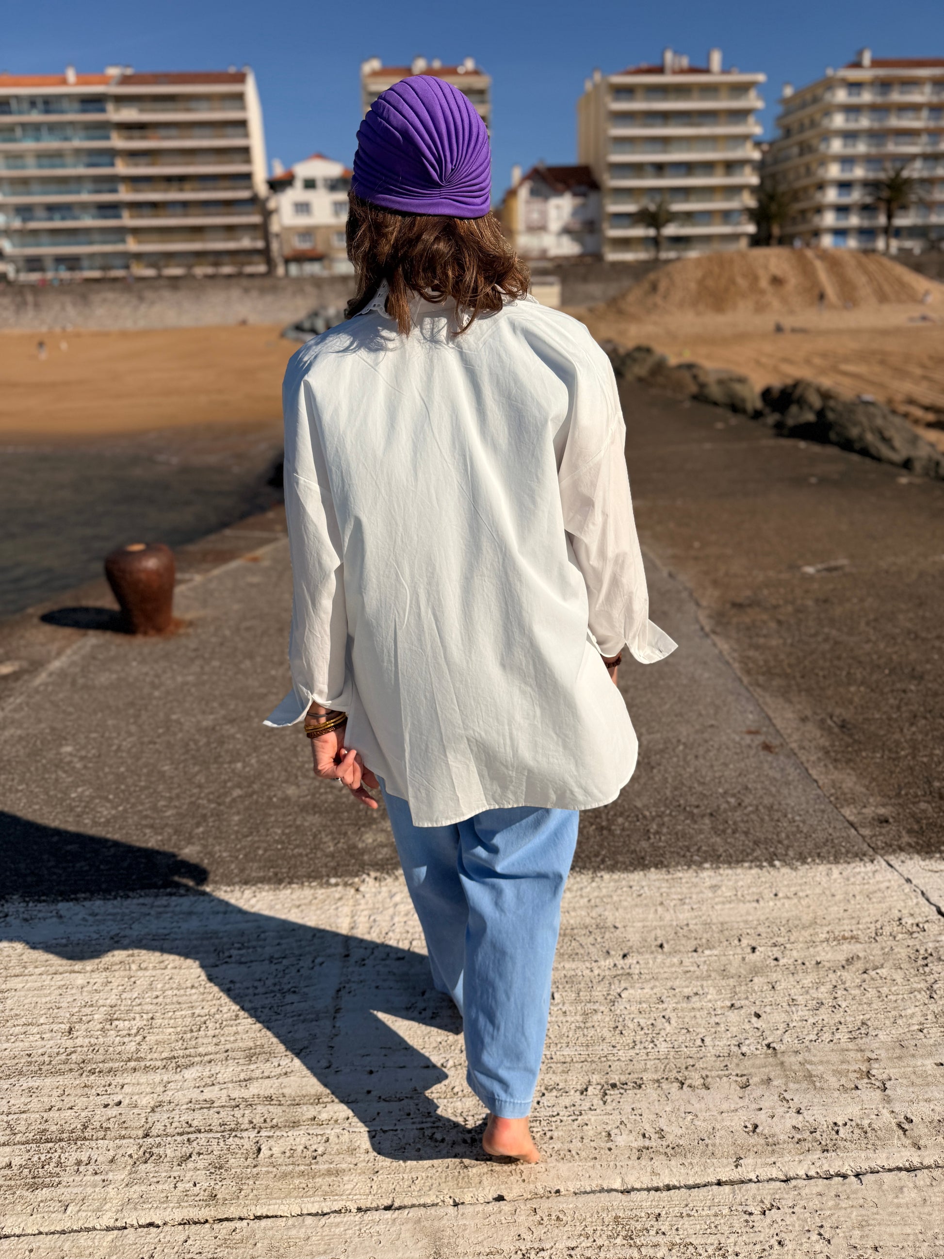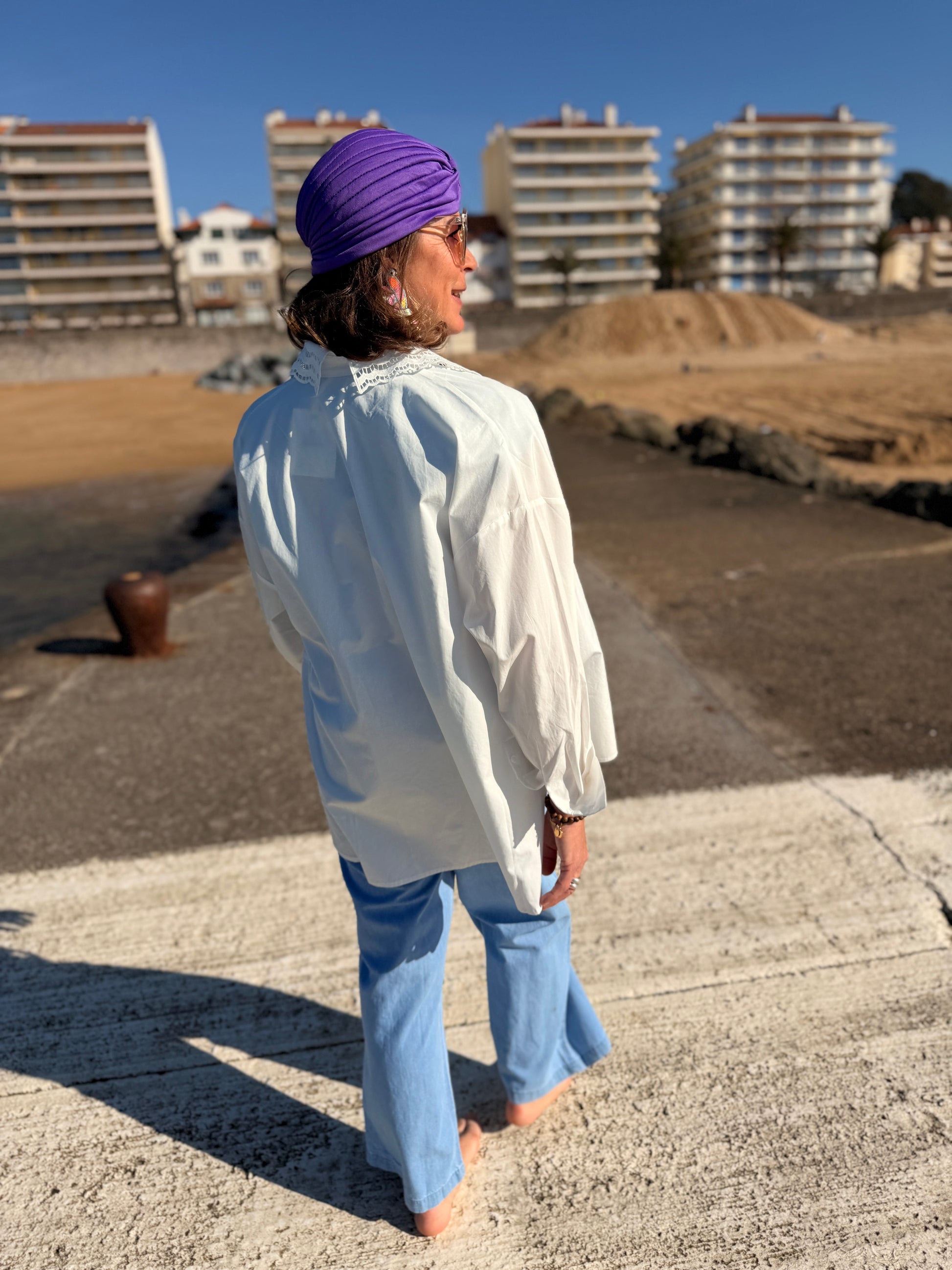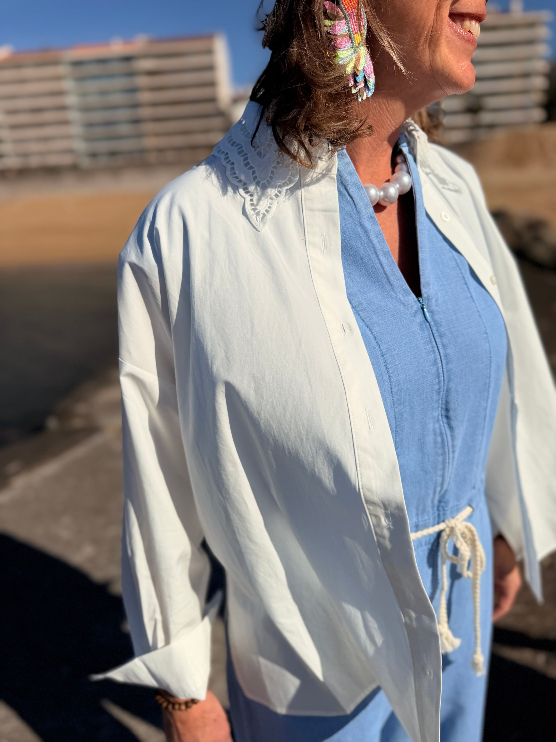 Ici, ce que l'on préfère c'est le col tout en broderie, ainsi que la coupe décalée, plus longue derrière que devant ainsi que l'ouverture sur le côté