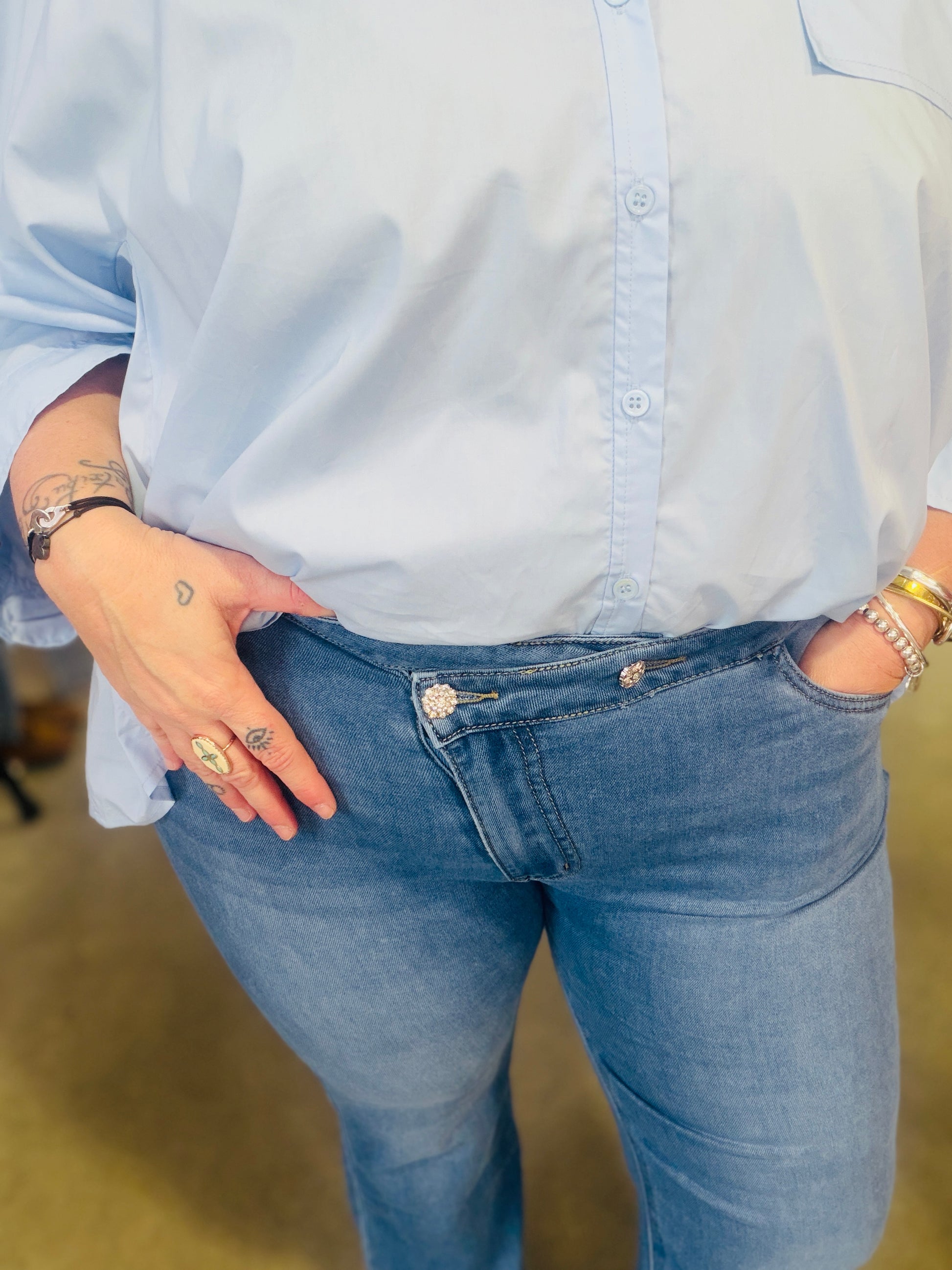 Vous nous l'avez longtemps réclamé, le jean patte boutonnée décalée est enfin là! A nous les looks de foliiiiiiie!