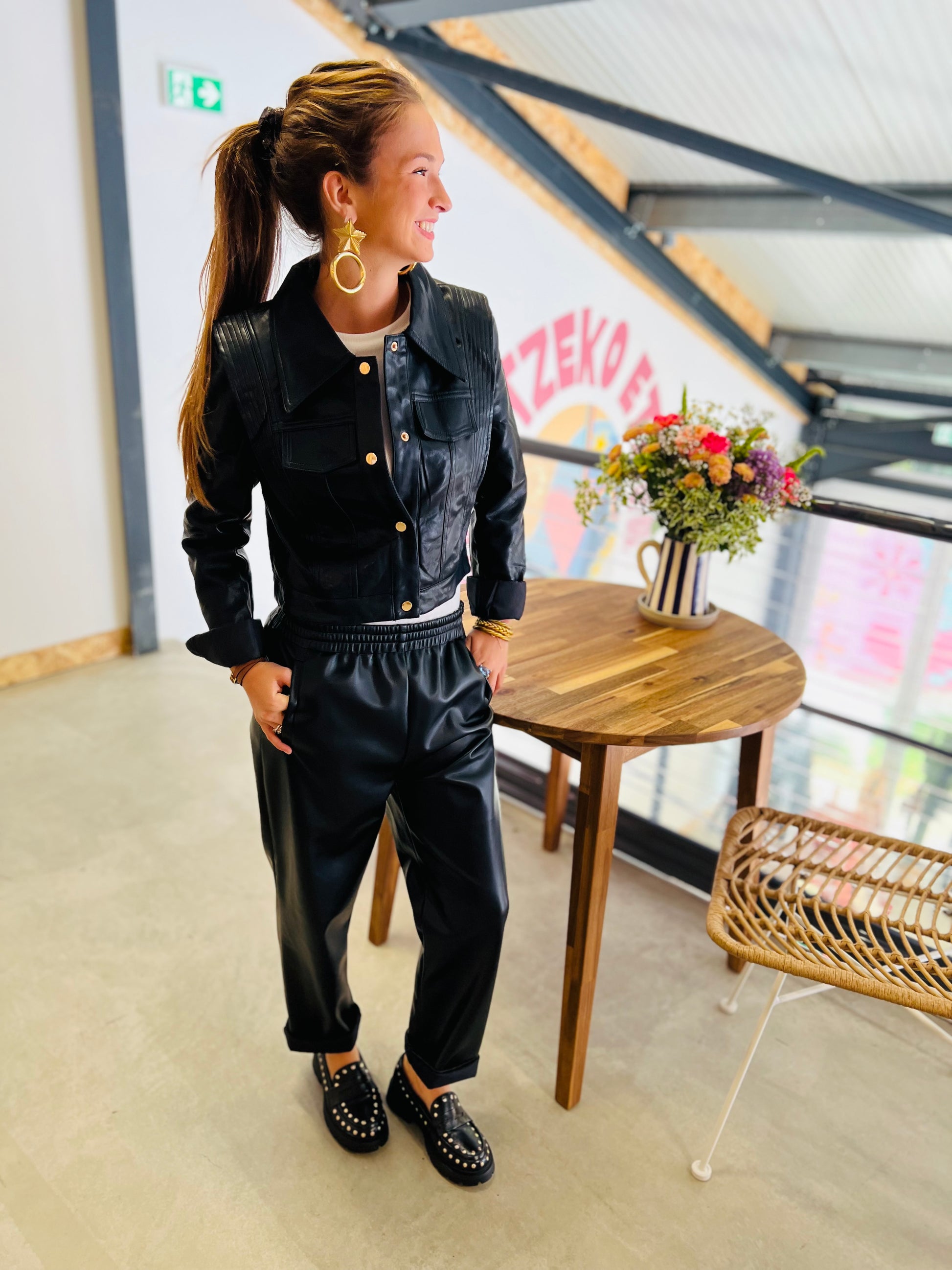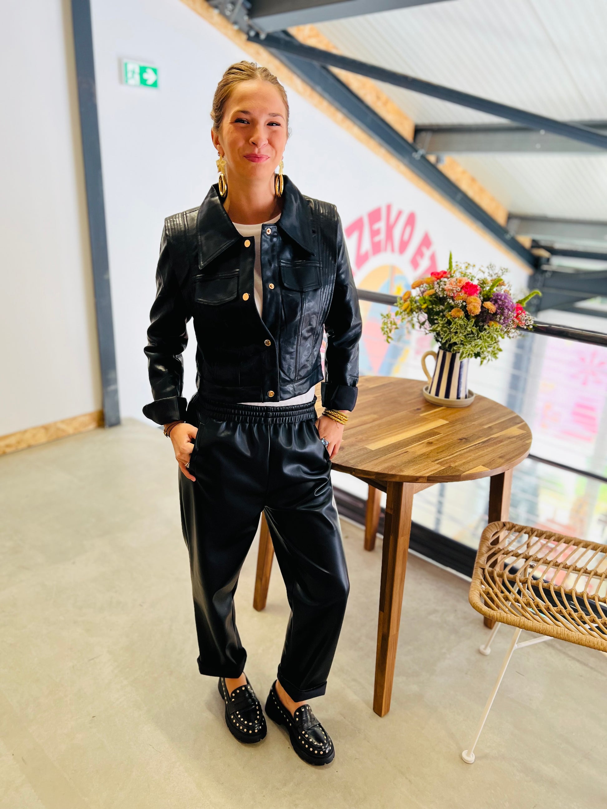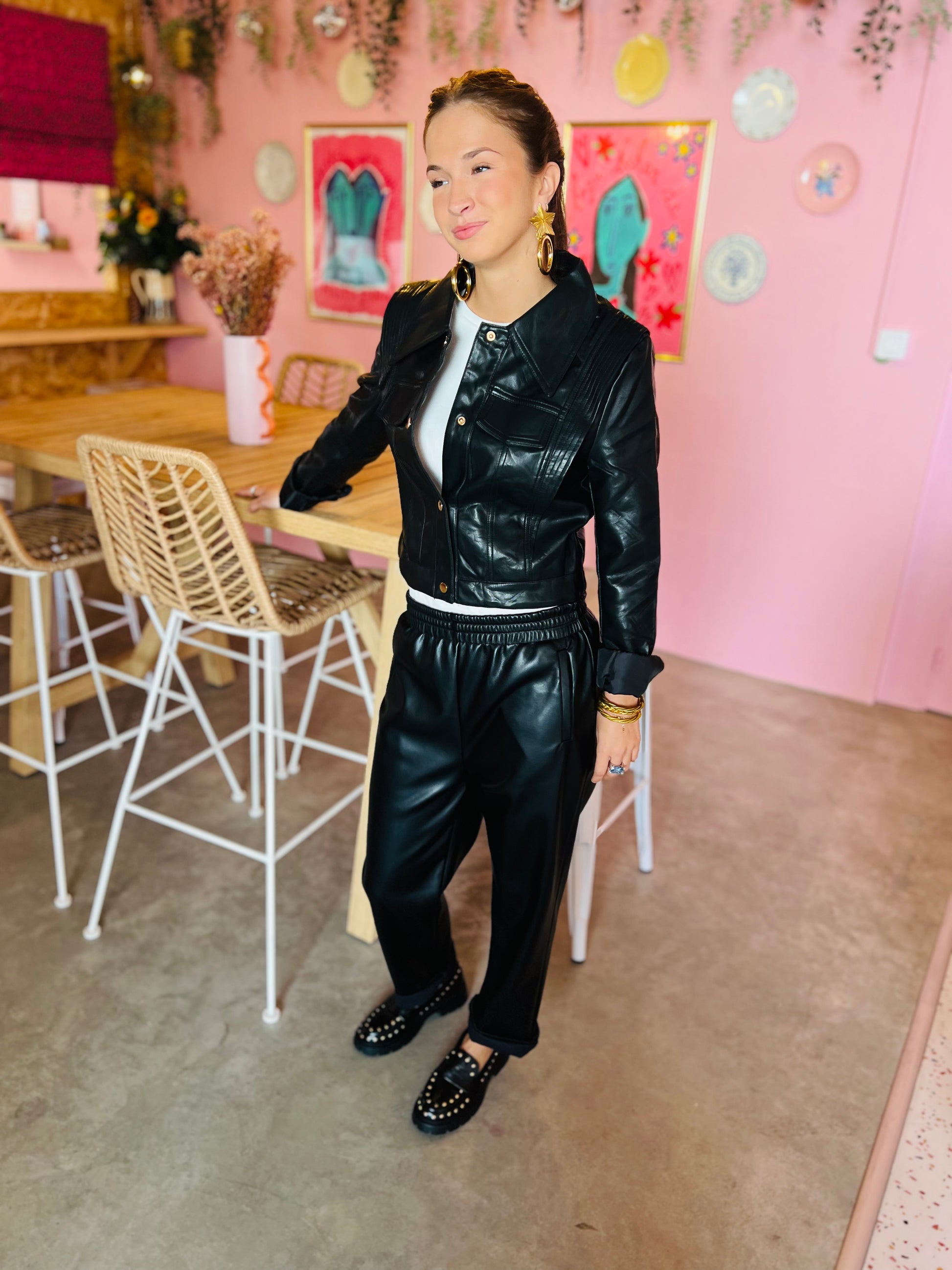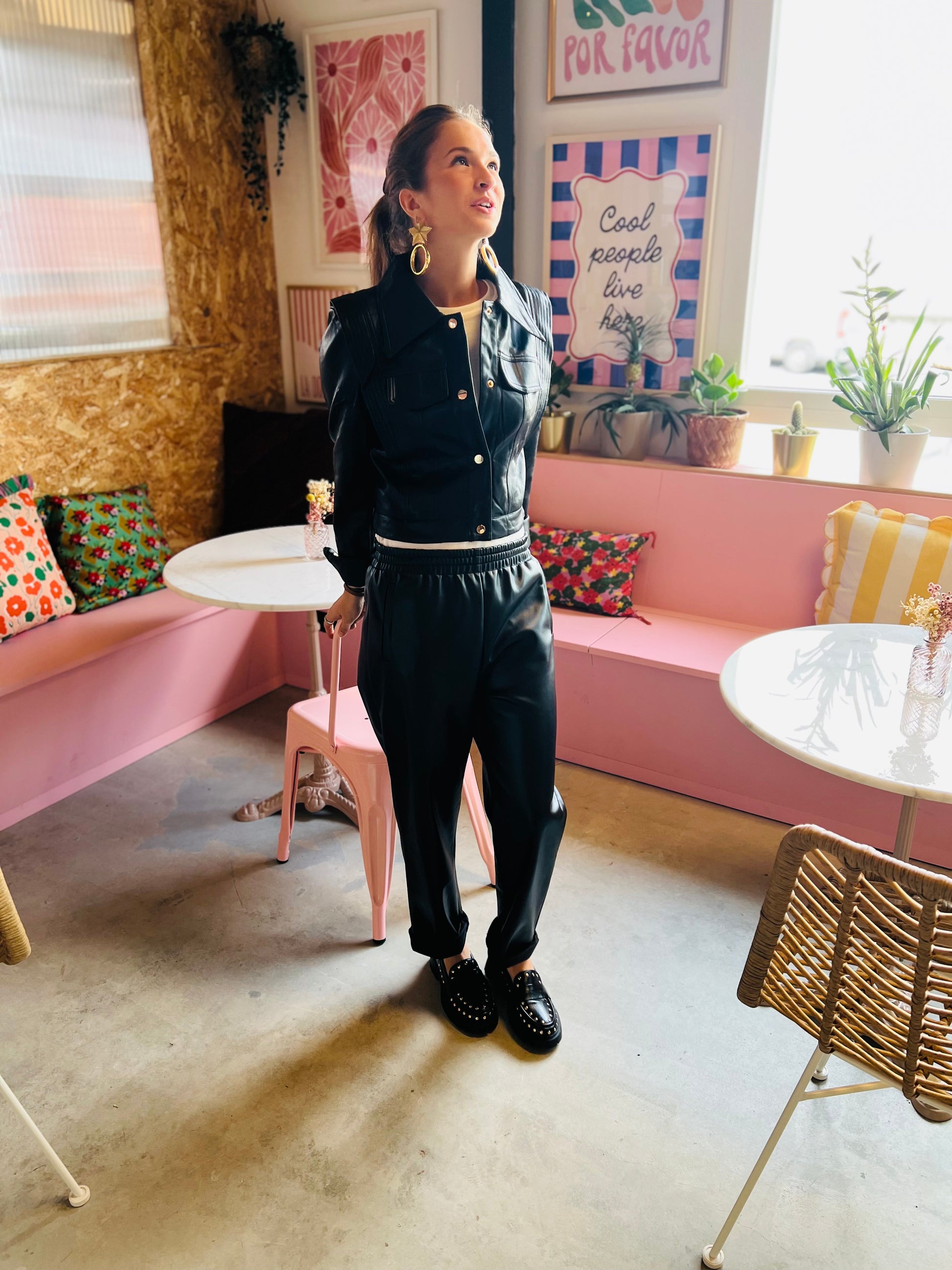Le jogpant, c'est vraiment la pièce qui met tout le monde d'accord mais de l'avoir crée en simili cuir, genre style+confort = waouh!!!!!!