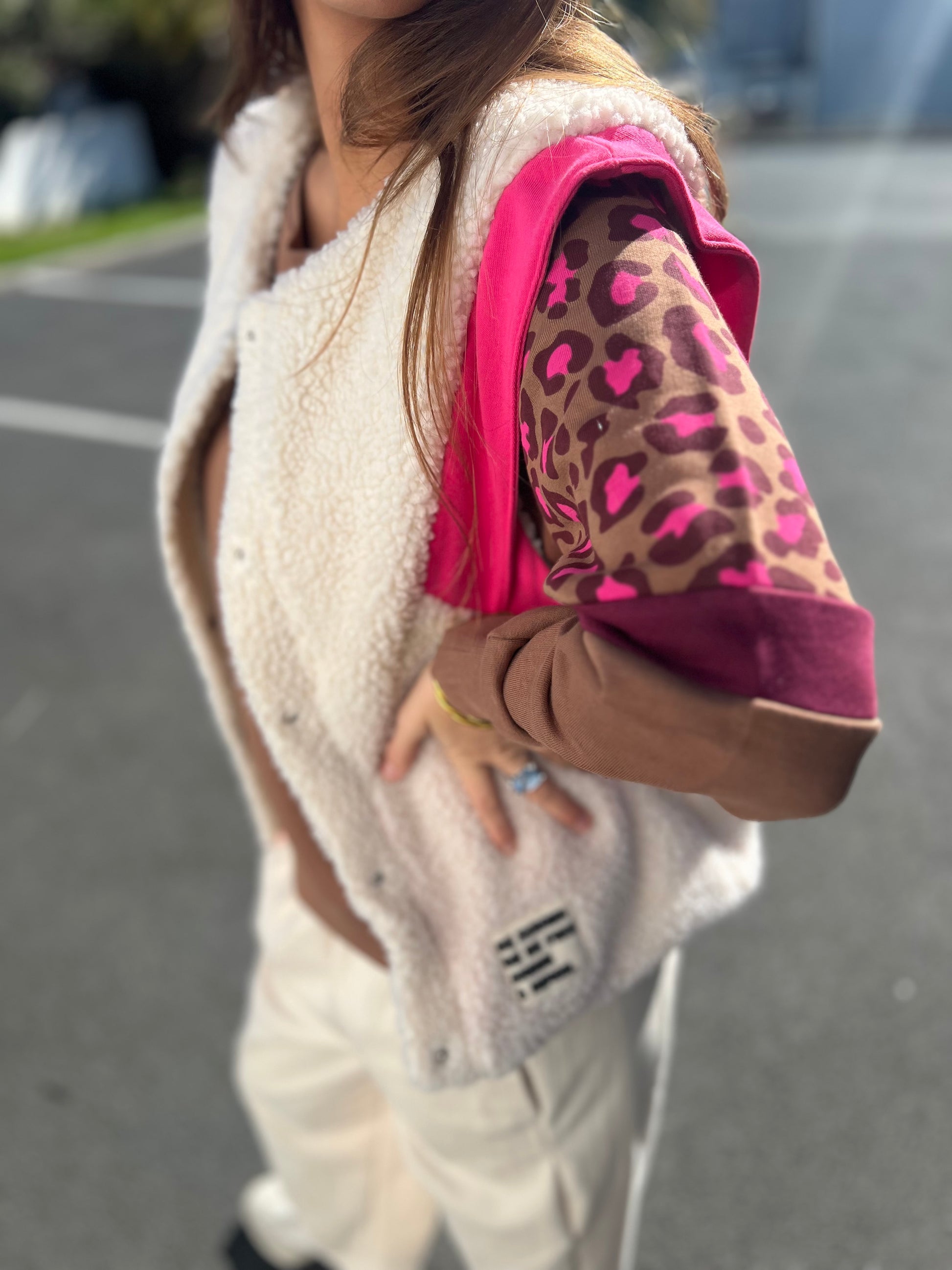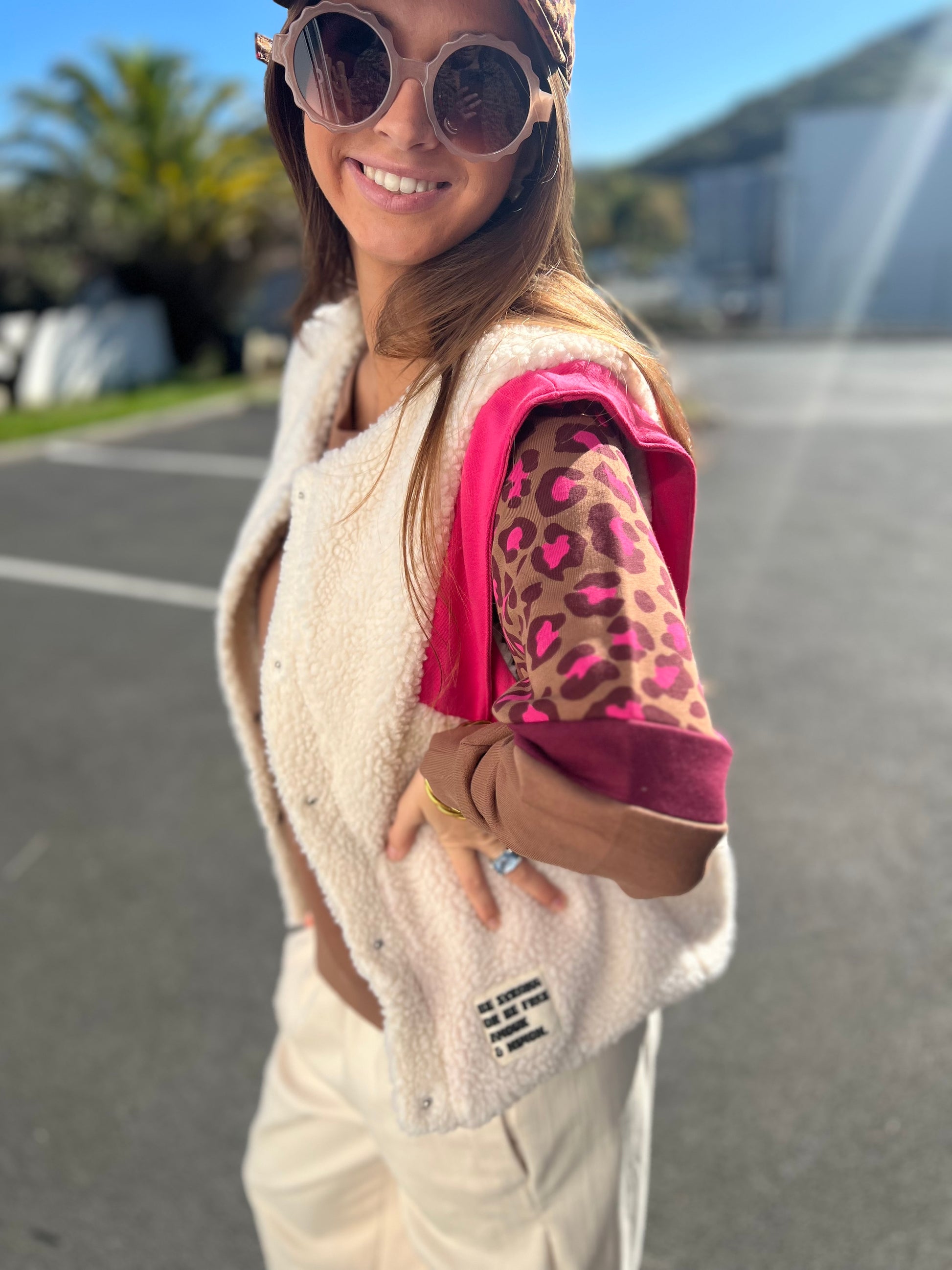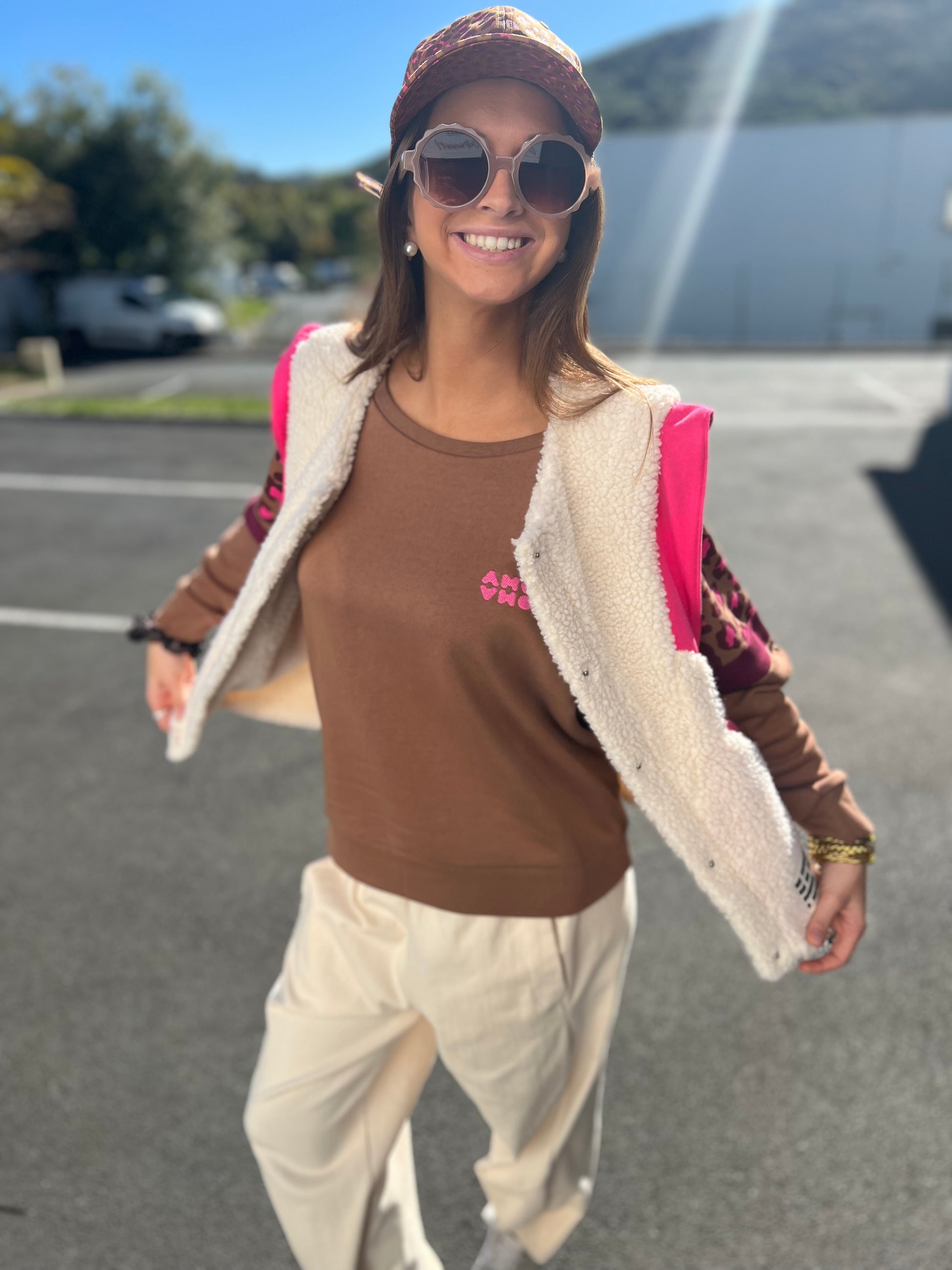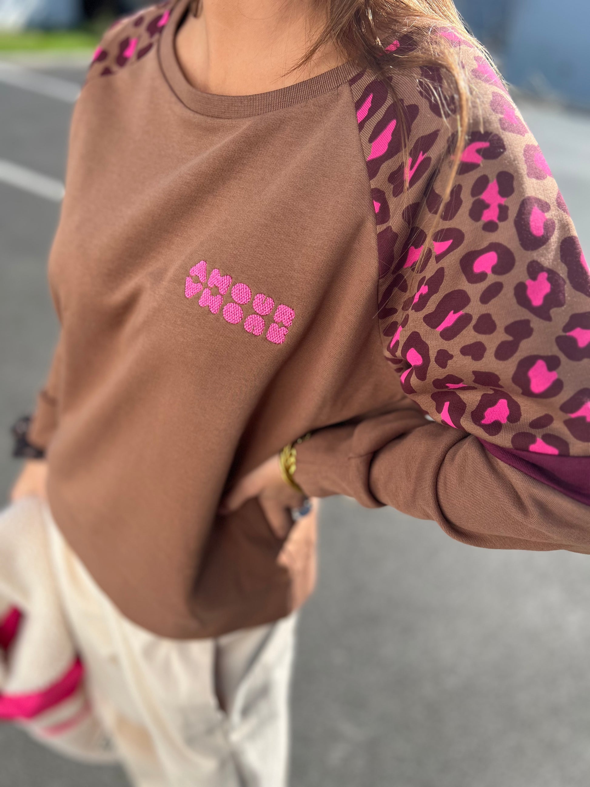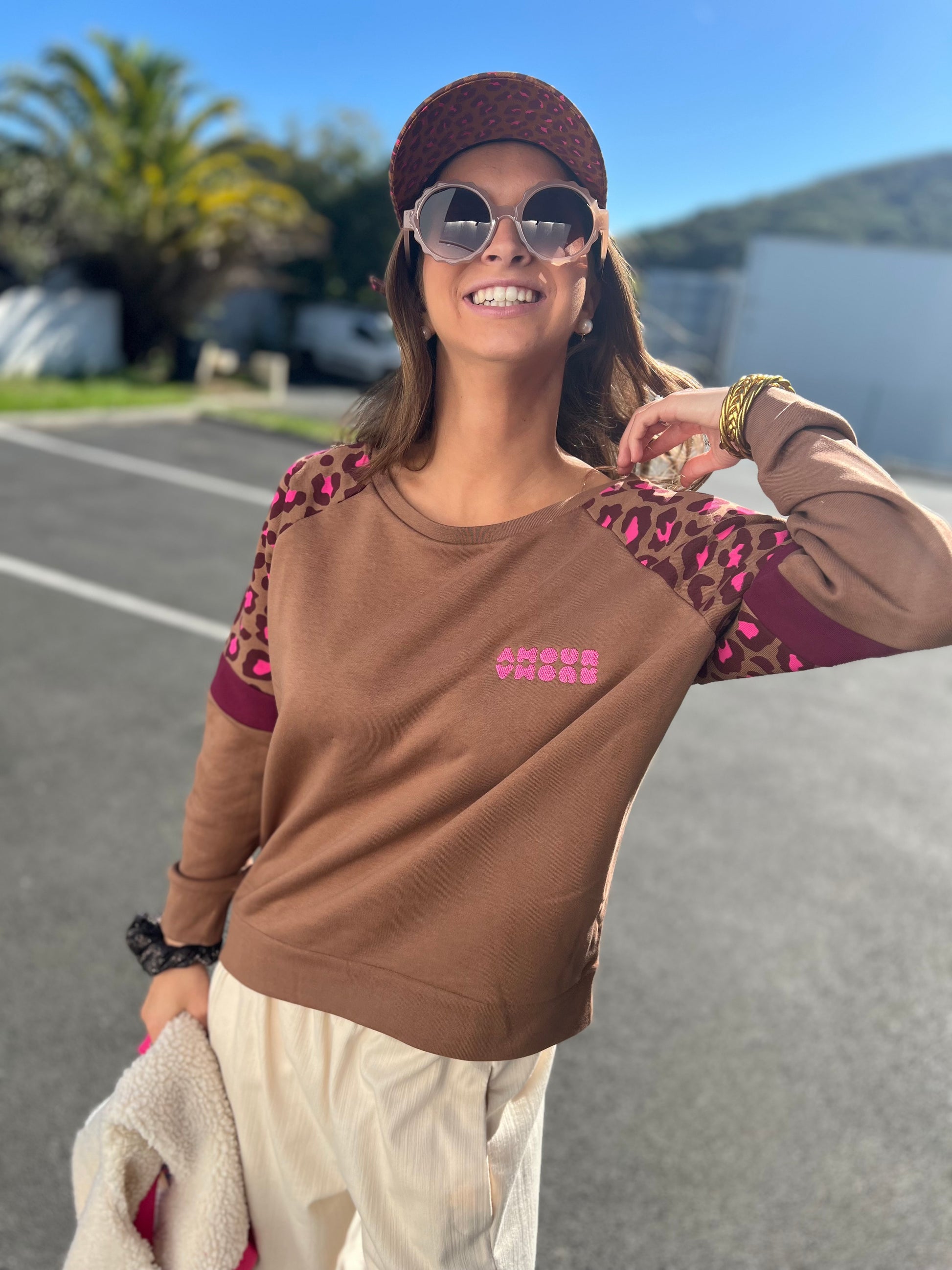 Sweat Sunshine camel manches léopard