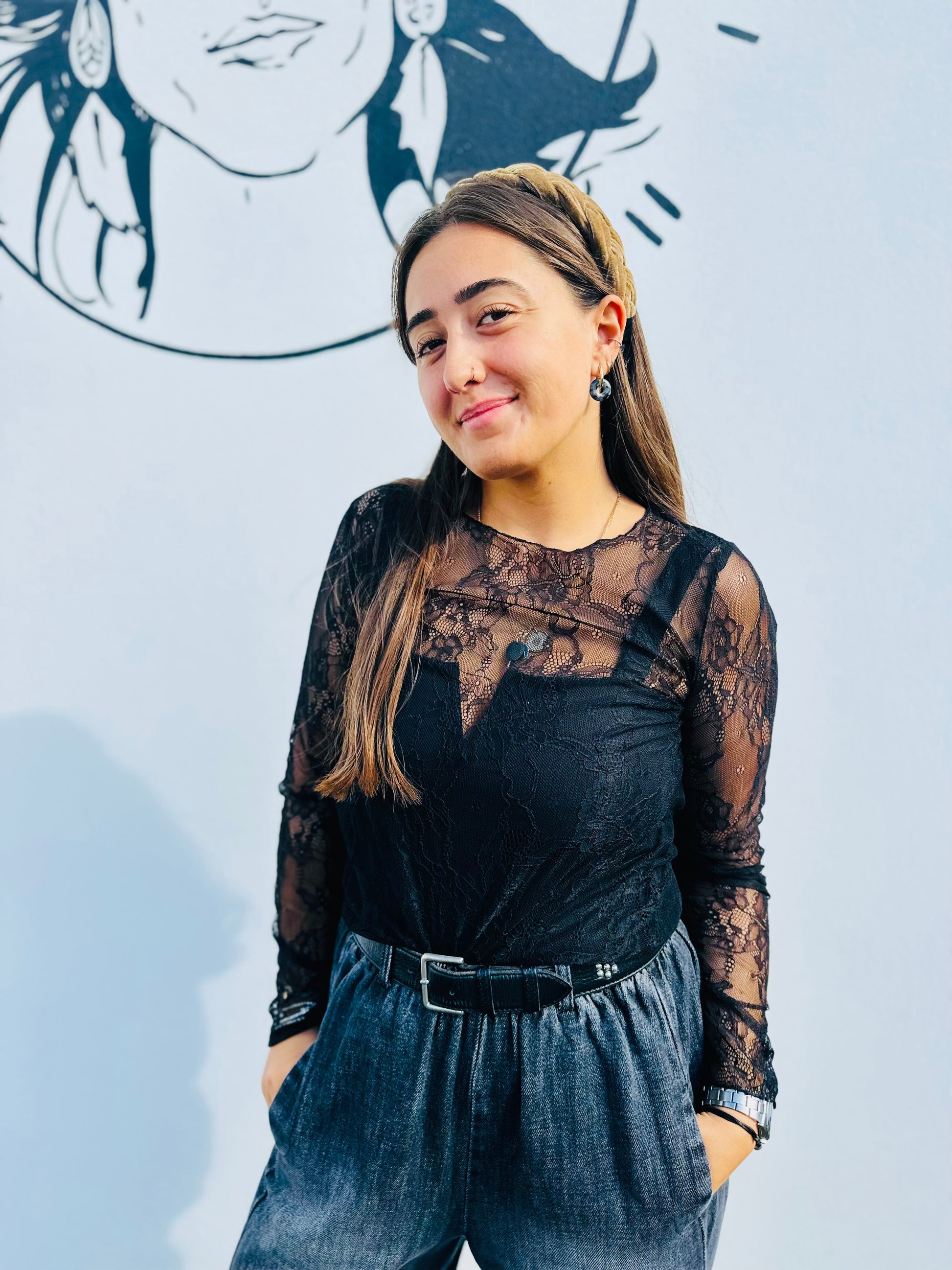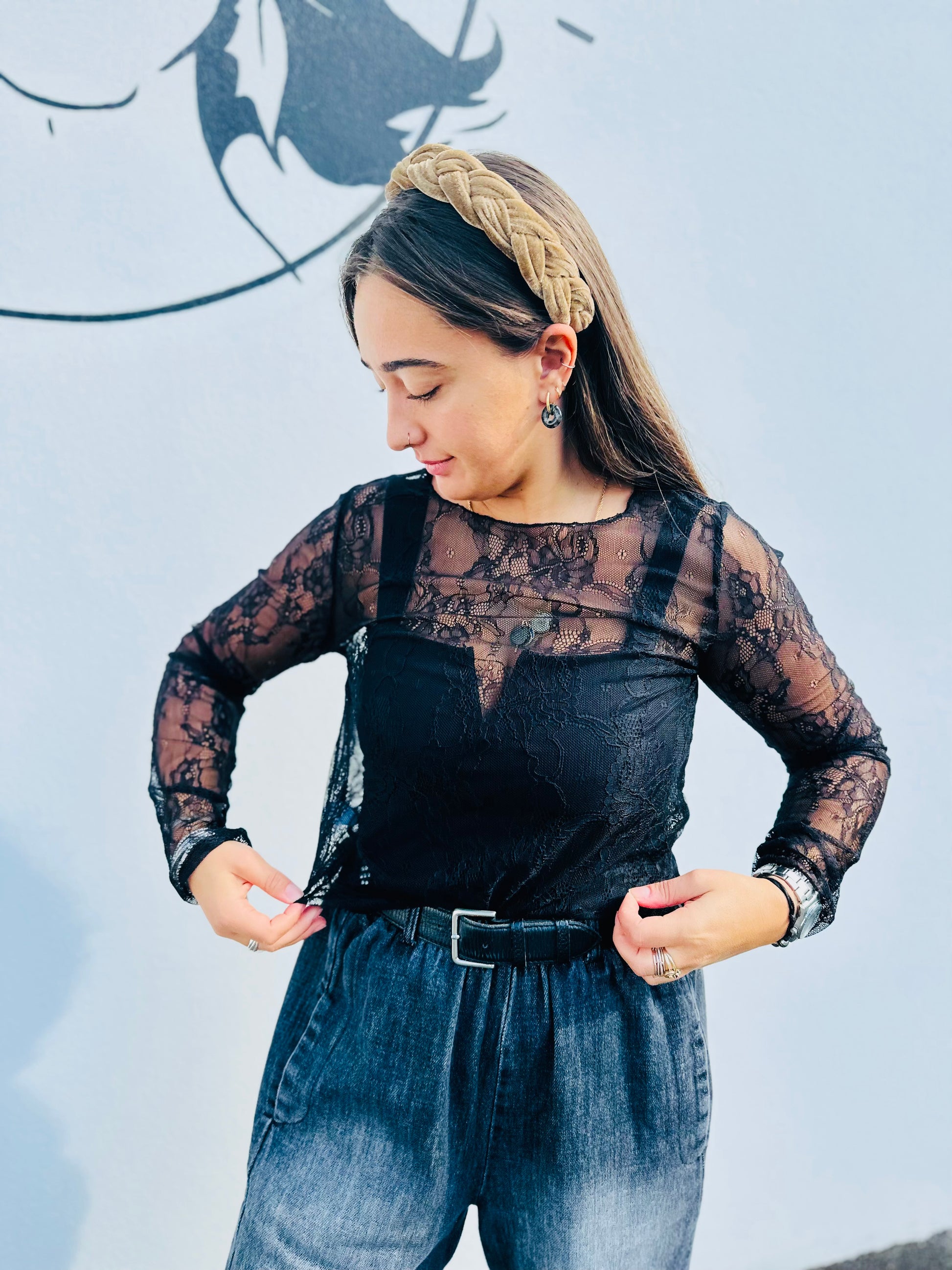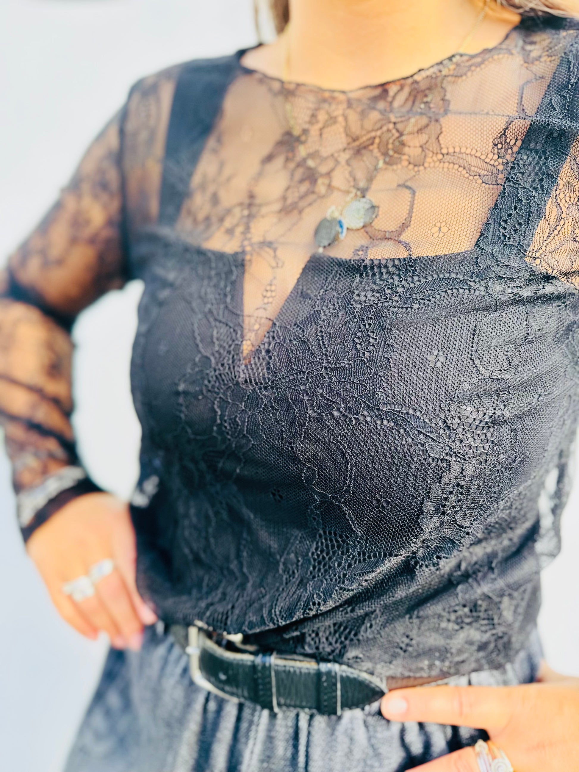 Top manches longues PALAZINO dentelle - Noir